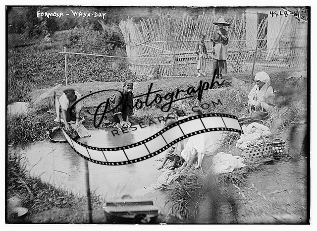 Formosa Wash Day,water bodies,pools,crowds,women,children,cleaning,dishes,Taiwan