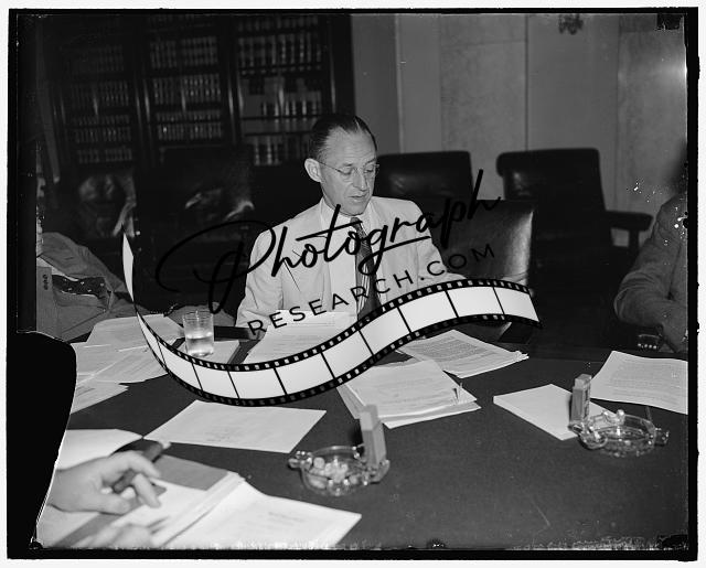 Title: Admiral Waesche sworn in for another four years. Washington, D.C., June 13. Today at the Office of the Secretary of the Treasury, Admiral Russell Randolph Waesche, was reappointed for another four years to the office of Commandant of the Coast Guard. Seen in the picture is Secretary of the Treasury Henry Morgenthau Jr. as he congratulates Admiral Waesche on his reappointment