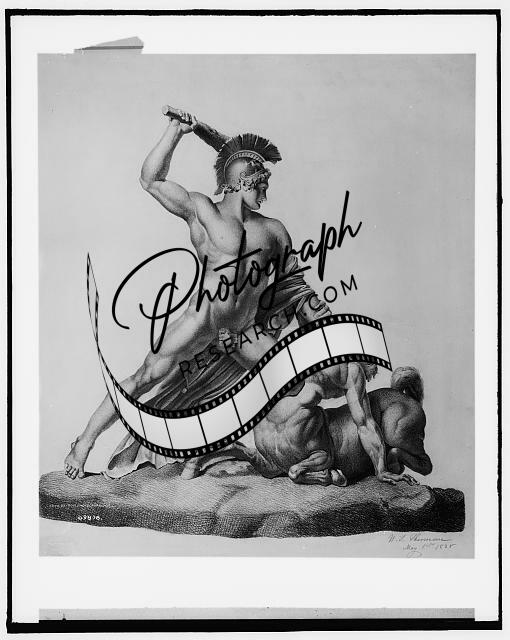 Nude warrior,helmet battling centaur,sculptures,Detroit Publishing Company,c1900