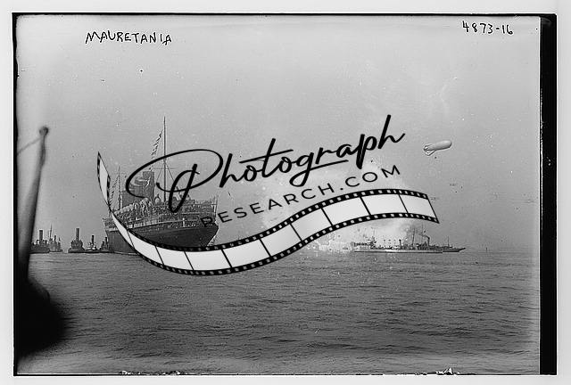 MAURETANIA,boats,ships,water vessels,smokestacks,zeppelin,Bain News Service