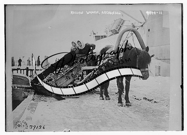 Russian women,cart,wagon,streets,paths,horses,roads,Archangel,Bain News Service