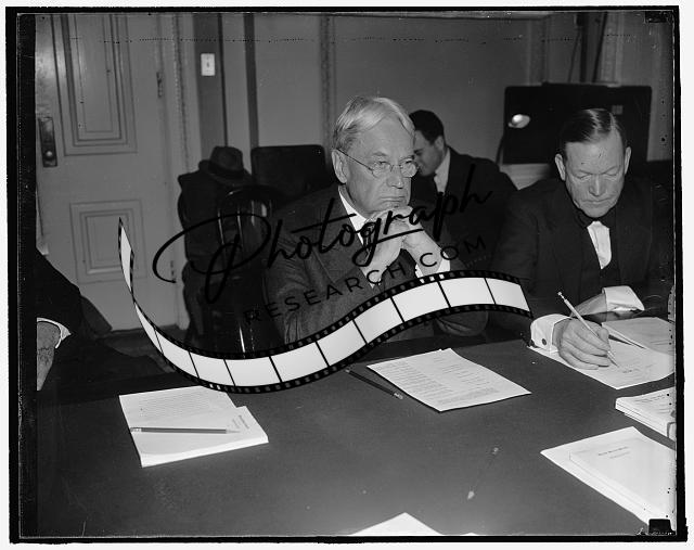 Title: Admits Army finance office honored allegedly fraudulent CCC vouchers. Washington, D.C., Jan. 18. Major General Walter L. Reed, (left) Inspector General of the Army, today told Senator Key Pittman, Chairman of the Senate Public Lands Committee, the Army Chief Finance Offi[...] honor allegedly fraudulent CCC vouchers in go[...] faith. Reed made this declaration as he was [...] by the committee on the alleged defalcations o[...] Stitley, former Chief Voucher Clerk for the CCC [...] totaling $87,000, 1/18/38