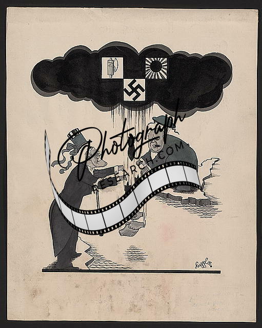 Axis bombs severing F.D.R. & Churchill's "hands across the sea"
