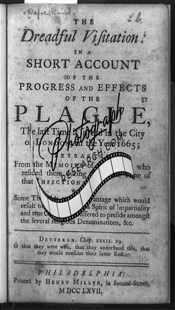 Title page,dreadful visitation,short account,progress,effect,plague,D Defoe,1767