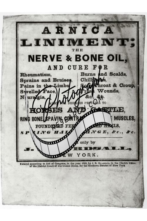 Photo,Advertisement Label,Arnica Liniment,Nerve & Bone Oil,c1852,Patent Medicine