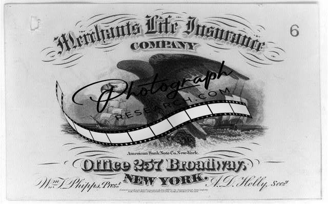 Advertisement,Merchants Life Insurance Co,receipt,eagle,New York City,NY,c1870