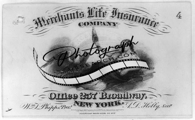 Advertisement,Merchants Life Insurance Co,receipt,eagle,New York City,NY,c1870