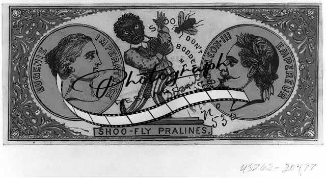 Advertisement,Shoo-fly Pralines,African American,Napolean III,Eugenie,c1870
