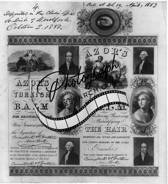 Advertisement,Azor's Turkish Balm for Restoring Hair,c1851,Washington,Henry Clay