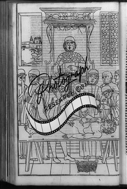 Mondino de Luzzi overseeing assistant,dissection,cadaver,students,Bologna,1495