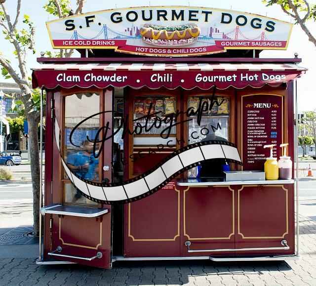 Title: Advertising kiosk on the streets of downtown San Francisco, California