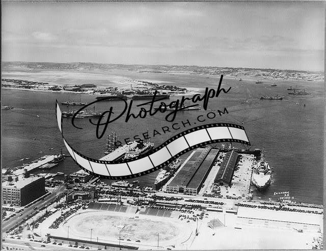 Aerial of San Diego Bay,California,April 1,c1935,ships,shoreline