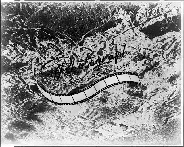 Aerial of a bombed area,line of mines in France during WWI,1914-1918,World War I