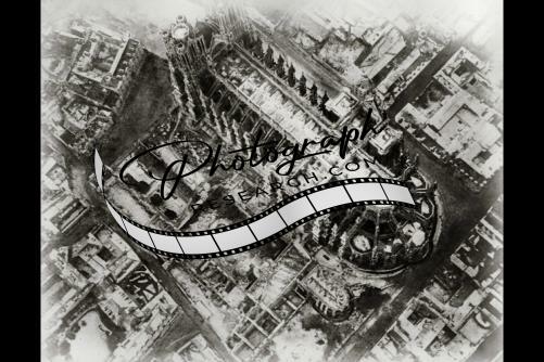Aerial of bombed Reims Cathedral,France,during WWI,1914-1918,World War I