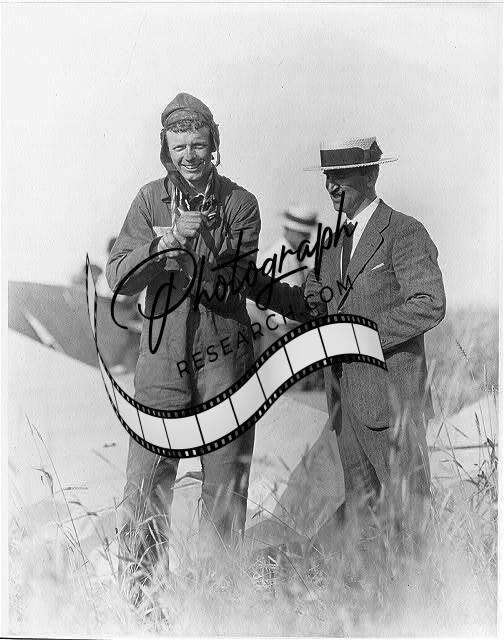 Charles Lindbergh wearing helmet,goggles,open cockpit,airplane,Lambert Field,MO