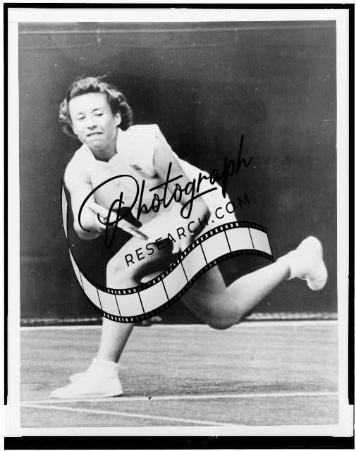 Maureen Connolly playing tennis at Wimbledon,London,England,1952,Sports