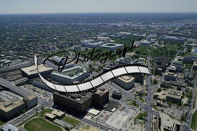 Aerial View,Federal Triangle,Washington,DC,red-roofed federal building,Highsmith