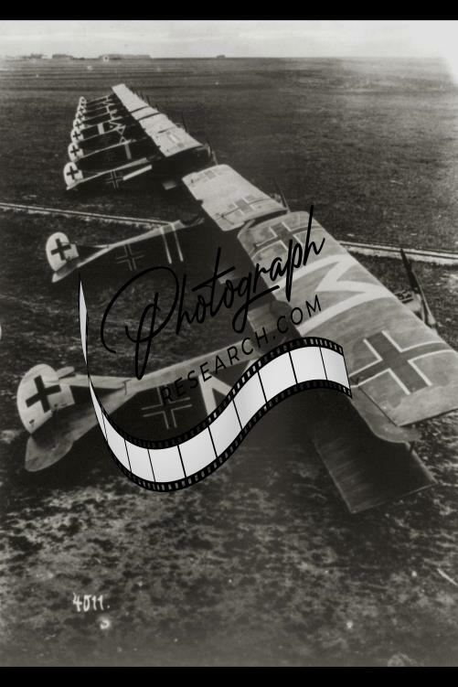 Ten German biplanes lined up wing-to-wing on field,1916?,World War I,WWI