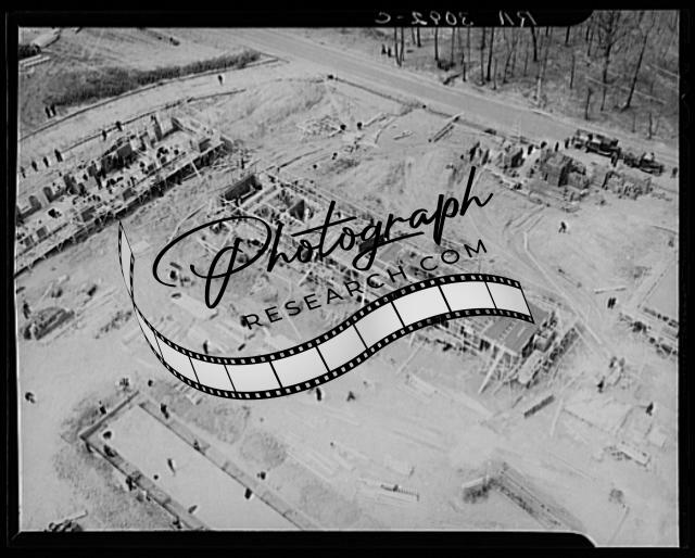 Title: Aerial view of construction at Greenbelt, Maryland, taken from the Goodyear blimp