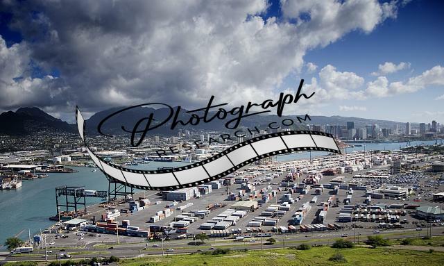 Aerial view of Honolulu,Hawaii,HI,Cityscape,Mountains,December 2005,Harbor,2