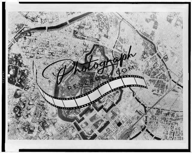 Aerial view of Tokyo,after bombing (?) by U.S. 20th Air Force,1945,WWI,Japan