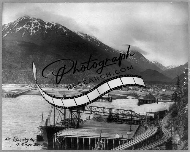 Skagway,A.B. Mountain,Alaska,Railroad Tracks,c1912,Pier,Ship,Mountains,RR