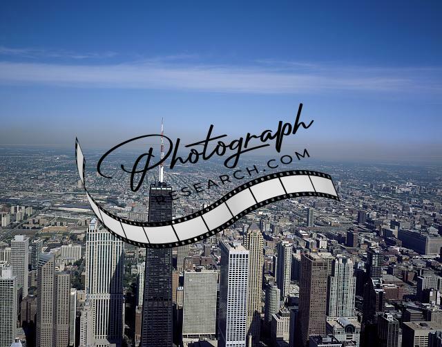 Aerial View of Skyline,Cityscape,Chicago,Illinois,IL,Sears Tower,Willis Tower