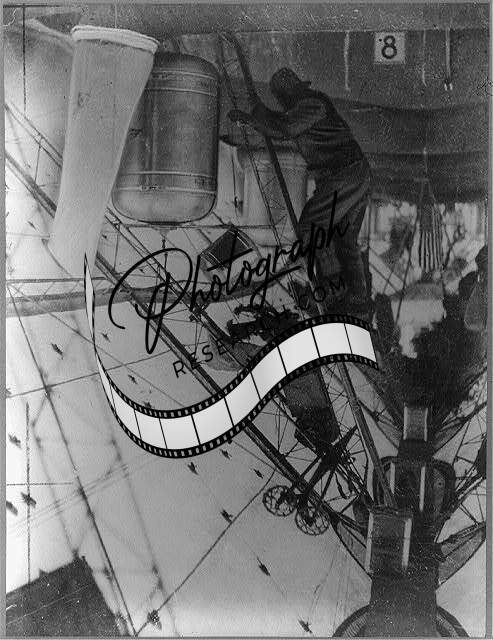 In the rigging of Norge during a hard period of the flight,Umbert Nobile,1926