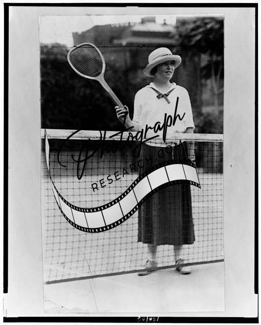Elizabeth Hughes,holding racket on tennis court,Charles Evans Hughes,c1910