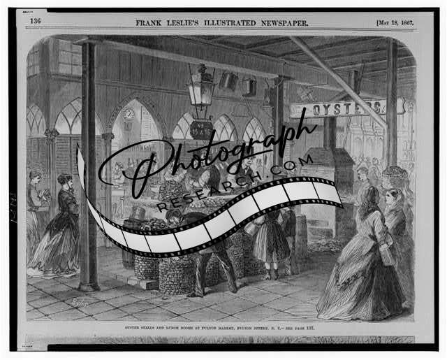 Oyster Stalls,Lunch Rooms,Fulton Market,Fulton Street,New York,NY,1867,Shellfish