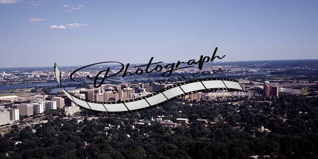 Title: Aerial view of Washington, D.C., with Union Station and tracks leading into it from the north