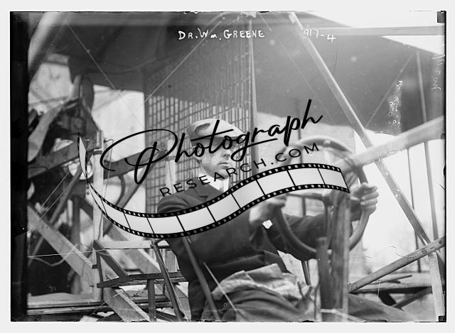 Dr. William Greene at pilot wheel of aeroplane,airplane,1909