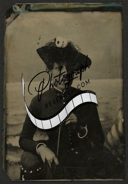 African American woman wearing flowered hat,holding parosol,dress clothes,1861