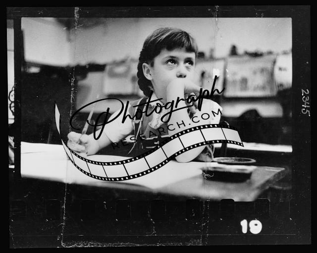 Young girl in classroom in Chicago,Illinois,IL,1949,Education,School Children