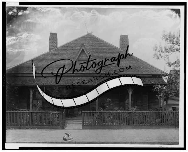 Exterior View,Picket Fence,Man on Porch,Dog lying on sidewalk,c1899,WEB Du Bois