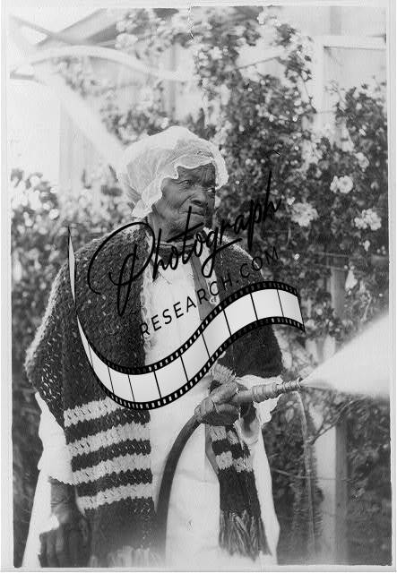 Mammy Prater,115 year old ex-slave;watering flowers with hose,c1920