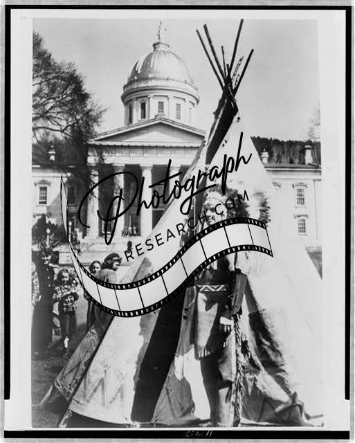 Mohawk Chief Poking Fire,Tipi,State House,Montpelier,Vermont,VT,1953,Indian
