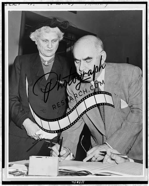Herbert Lehman registering to vote as his wife looks on,Edith Louise Altschul