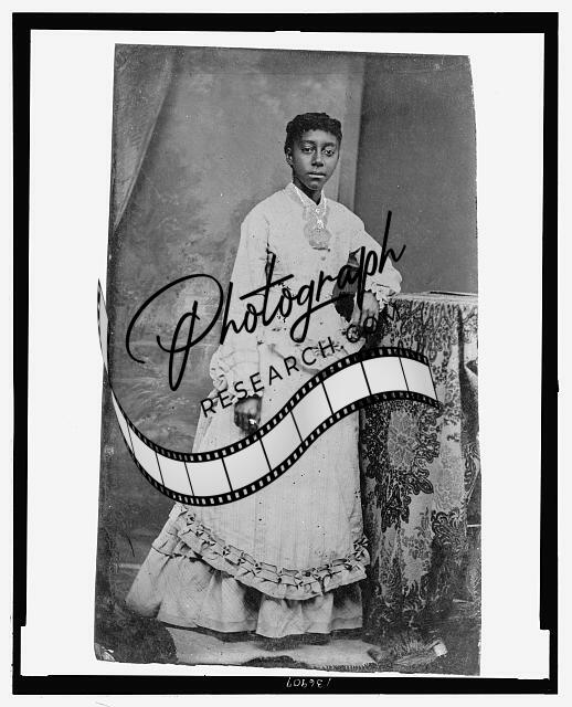 African American woman,1870-1900,stading in dress inside,wearing hat