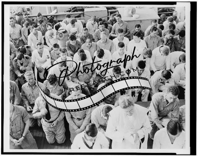 Prayer before battle,Officers,Enlisted Men,US Navy,USN,World War II,WWII,Army