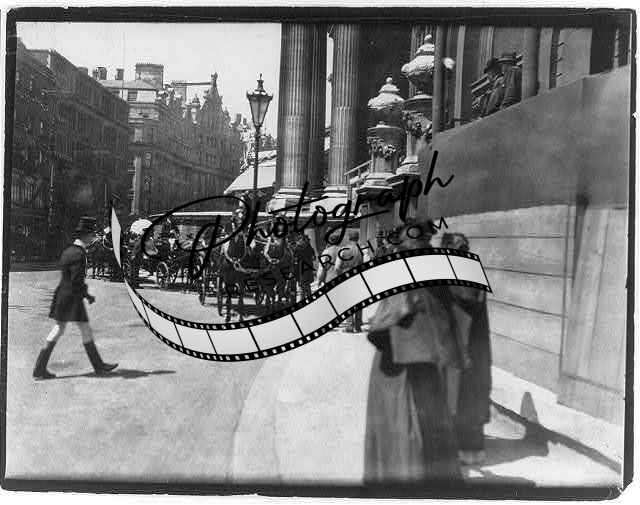 Entrance to St. Paul's Cathedral,London,1901-1919,horse-drawn carriages,people