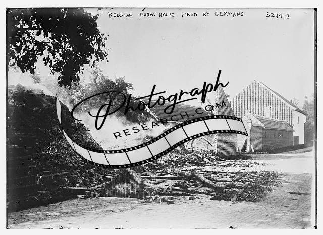 Belgian Farm House,home,fired,German Army,World War I,Bain New Service,c1910