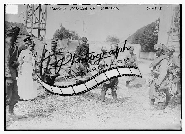 Wounded Moroccan on stretcher,men,woman,Bain News Service