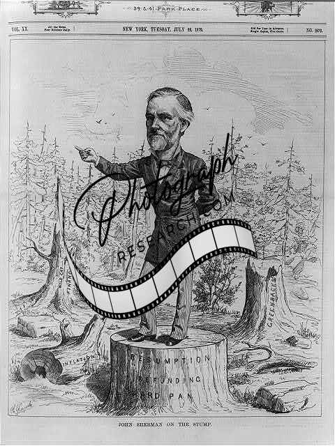 Cartoon,John Sherman,Ohio,Resumption-Refunding Hard Pad,1879,Congress