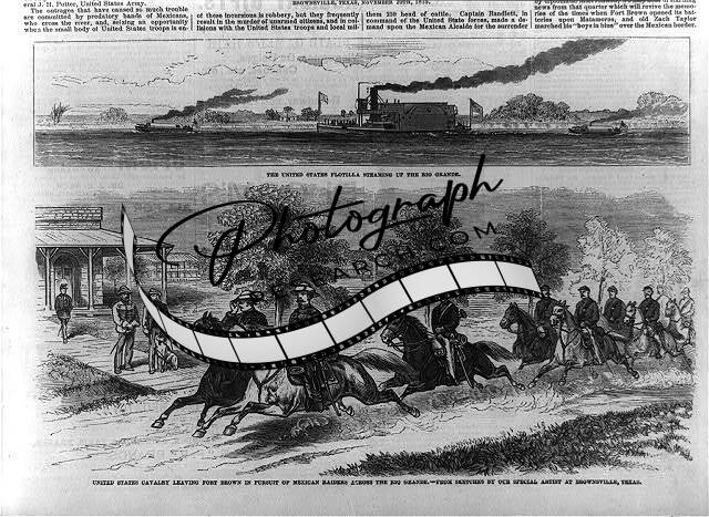 United States Flotilla Steaming up Rio Grande,Cavalry,Fort Brown,1876,Raiders