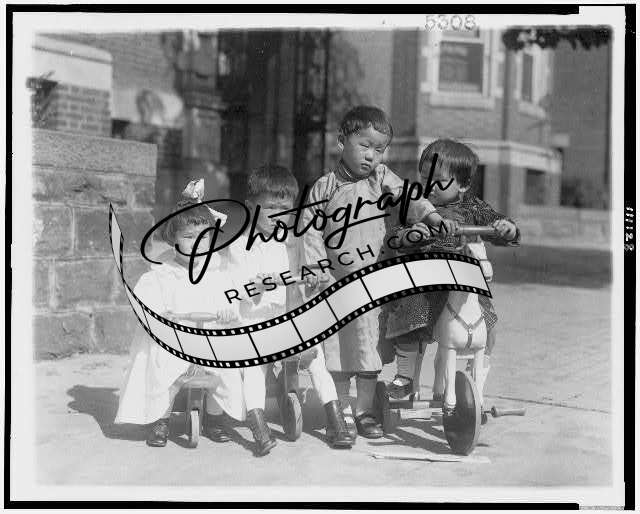 Four Oriental Children,Small Bicycles,Kids,Play,1909-1932
