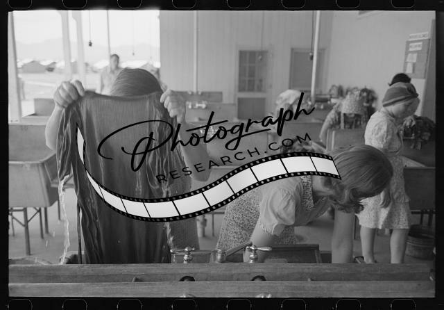 Title: Wives of migratory laborers in the laundry room at the Agua Fria Migratory Labor Camp, Arizona