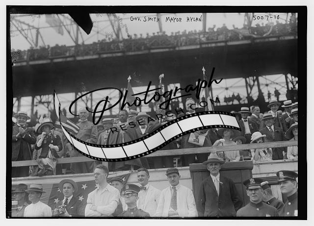 Governor Smith,Mayor Hylan,spectators,crowd,military personnel,Bain News Service