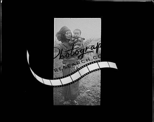 Ainu woman holding child outside,villages,lantern slides,Arnold Genthe,1908