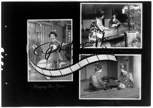 Happy New Year,Washing Hands,Playing 'Go',1915-1925,Japan,Kimonos,women